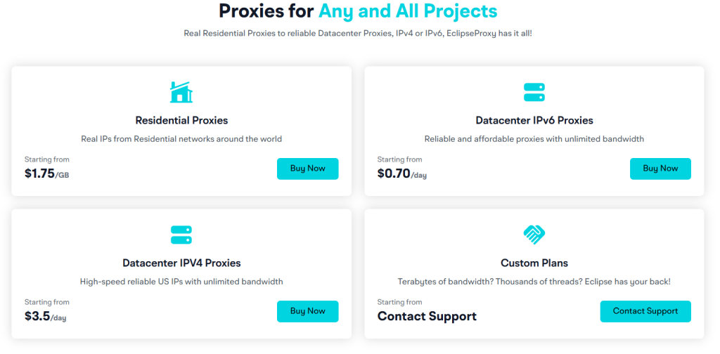 Now, let’s look at the various proxy plans offered by Eclipse Proxy. These plans are designed to suit a range of needs, from small-scale users to large enterprises. Here’s a breakdown of the available options: