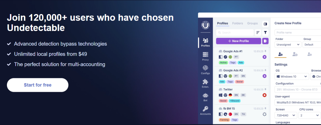 The thing that really sets Undetectable.io apart is their approach to browser fingerprinting. Instead of just changing a few basic parameters like many competitors do, they update the fingerprint using high-quality, real configurations available for purchase in their configuration store. This means the fingerprint modifications happen at a much deeper level, making detection practically impossible. I’ve tested this extensively across platforms that are known for their strict detection systems, and the results have been consistently impressive.